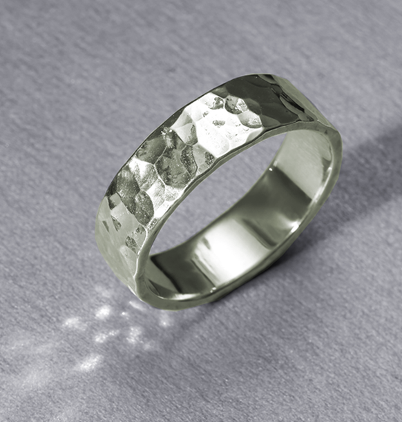 槌目加工により雪に日が当たって煌めく様子を表現したYUKI。槌目の細かさ等のご希望も承ります。